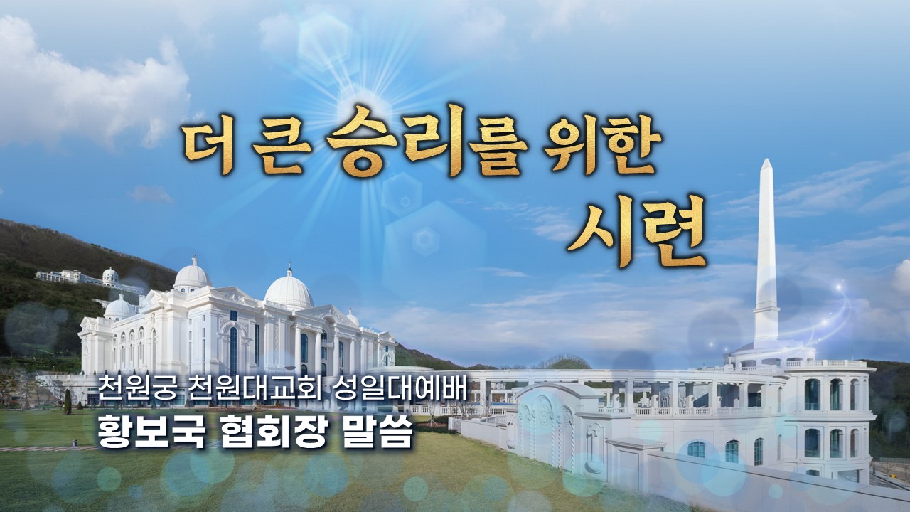 "더 큰 승리를 위한 시련" 천원궁 천원대교회 성일대예배 말씀 - 천일국13년 천력6월12일 (양.7.6) "더 큰 승리를 위한 시련" 천원궁 천원대교회 성일대예배 말씀 - 천일국13년 천력6월12일 (양.7.6)